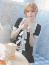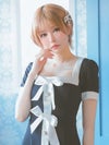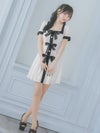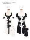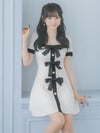 4. [韓国ドレス] 半袖スクエアネックパイピングサテンリボンモノトーンフレアミニドレス
