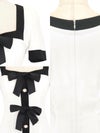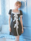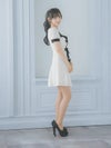 4. [韓国ドレス] パイピングフロントリボンパールデザイン半袖モノトーンフレアミニドレス