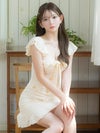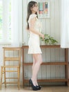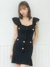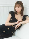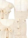 深めのスクエアネックでデコルテをすっきり魅せる。レース×リボンの甘さに、ボタンが上品なアクセント。可愛さと大人っぽさを両立した、シーンを選ばず使える一枚。
