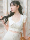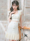 [韓国ドレス] セーラーフリル袖コットンレースウエストカット裾フリルタイトミニドレス