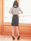 - [韓国ドレス] スカラップレース襟デザインバストカットアウトウエストベルト切替袖ありタイトミニドレス