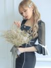- シアー パフスリーブ リボン 袖あり 膝丈 スリットドレス