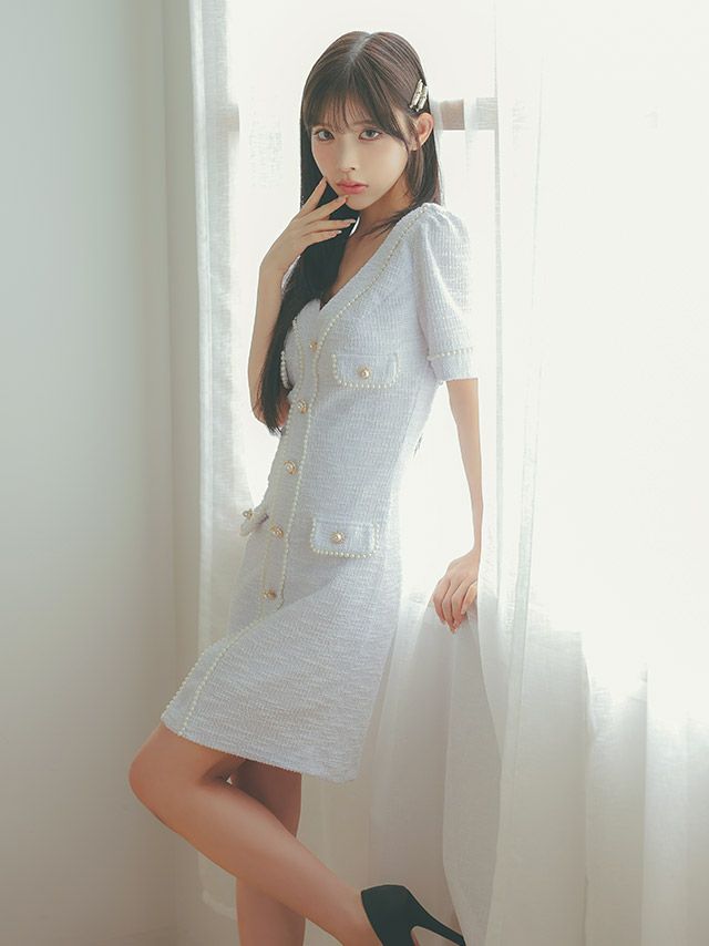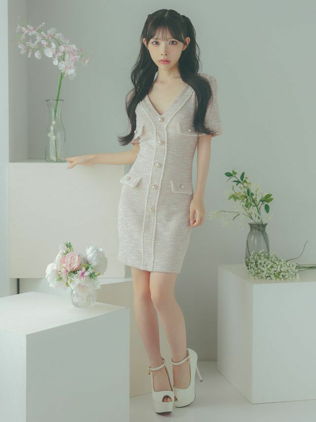 4.83 6件 他の画像を見る 上品なかわいさを演出★ 半袖 ツイード パールライン Vネック タイトミニドレス SALE ホワイトドレス SALE ¥ 13,200 ¥ 10,560 税込 カートに入れる お気に入りに登録する