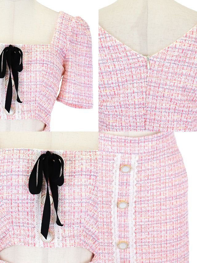 0件 他の画像を見る 完璧ガーリーデザイン☆ [MFWシリーズ]半袖 スクエアネック リボン ボタン ツイード ネックリボン マーメイドミニドレス ¥ 14,080 税込 詳細を見る お気に入りに登録する