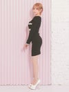 クラシカルなパイピングデザインにスパンコールがきらめく。モノトーンカラーで大人エレガントに着こなせる。