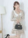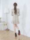 #黒崎みさ #ガーリーワンピ #ウエストカット #チェック柄 #マーメイド #襟デザイン #長袖 #ベージュ