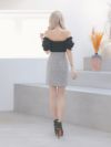 #ぴょな #オフショル #ツイード #タイトドレス #ウエスト切替 #ウエストカバー #モノトーン #セクシードレス #二の腕カバー #ブラック