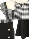 - [韓国ドレス] ギンガムチェック柄フリル袖レースハイウエスト切替ダブルボタンフレアミニドレス