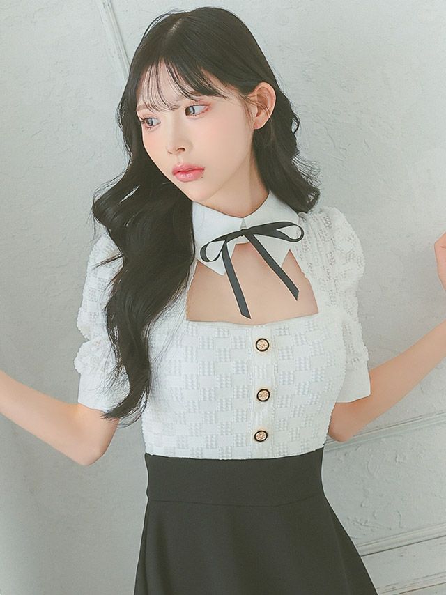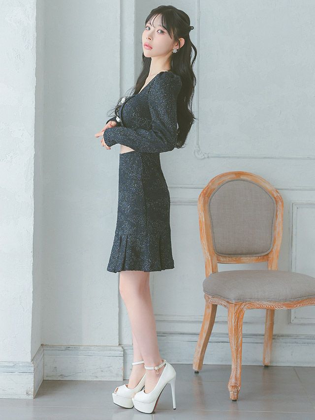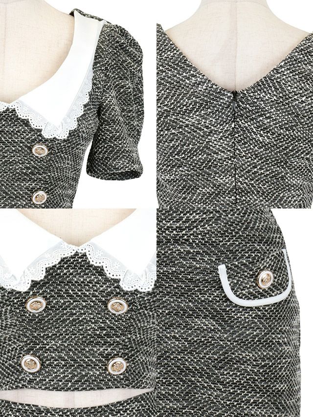0件 他の画像を見る ウエストカットでちょっぴりセクシー★ [韓国ドレス] ウエストカットフリル襟デザインダブルボタン半袖パフスリーブツイードタイトミニドレス ¥ 13,200 税込 詳細を見る お気に入りに登録する