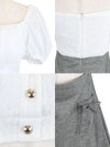 スクエアネックでお顔まわりスッキリ。カットアウトからウエストをかわいくチラ魅せ。スカートのさりげないリボンが、甘さをちょっぴりプラス。
