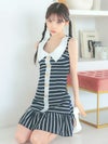 ボーダー×金ボタンがまるでマリンガールなワンピ。ふんわり広がるフレアスカートで、美脚もアピールできる。