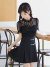 ブラックレースでちょっぴりセクシーな甘すぎないオトナミニワンピ。シンプルなワンカラーでもベルトデザインが目を引くアクセントに。