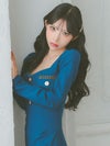 [韓国ドレス] ゴールドボタン付き長袖カシュクールタイトミニドレス