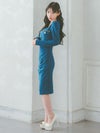 ディープブルー×ゴールドボタンでオトナの魅力全開。カシュクール入りデザインで、スタイルアップ効果もバツグン。