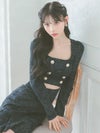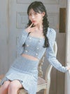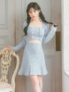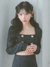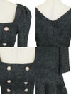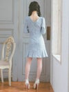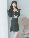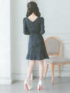 - パールボタン付き 長袖 ツイード マーメイドミニドレス