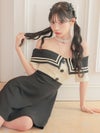 大きめな襟デザインで一気にガーリーさUP。ハイウエスト切替で自然にウエスト位置を高く見せてくれる。