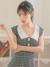 大きめな襟デザインとギンガムチェックの組み合わせが、これからの季節にぴったり。