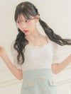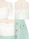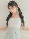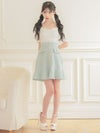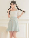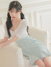 - [韓国ドレス]レースアップウエスト切り替え袖ありシアースリーブゴールドボタンマーメイドミニドレス