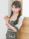 - [韓国ドレス] 袖ありパフスリーブスクエアネックタイトミニドレス
