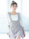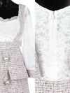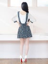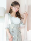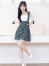 - サロペット風 オルチャン ホワイト フラワーレース 袖あり パフスリーブ ハイウエスト切替 フレアミニドレス