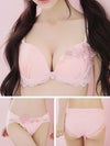 女の子らしい甘いピンクに華やかなローズの刺繍を飾ったcuteランジェリー。