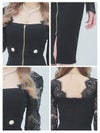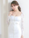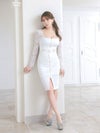 シンプルで大人っぽいモードな雰囲気のひざ丈ドレス。袖の部分がレース切り替えにデザインで、程よい透け感が大人セクシー。まるで海外の女優のような洗練されたデザイン。
