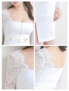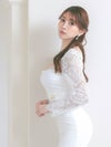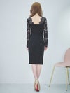 シンプルで大人っぽいモードな雰囲気のひざ丈ドレス。袖の部分がレース切り替えにデザインで、程よい透け感が大人セクシー。まるで海外の女優のような洗練されたデザイン。