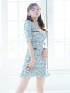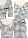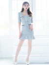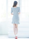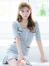 - [韓国ドレス] ツイードチェック半袖ウエストカットフロントジップマーメイドミニドレス